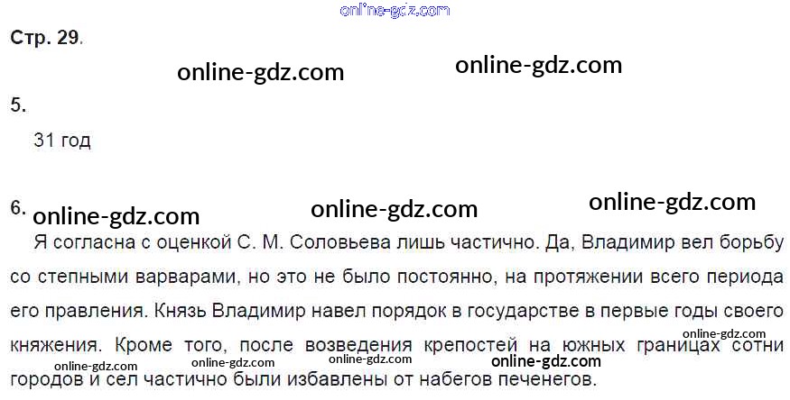 Готовые домашние задания по Истории за 6 класс Рабочая тетрадь Артасов, Данилов 2016 - §6. Правление Князя Владимира. Крещение Руси стр. 29