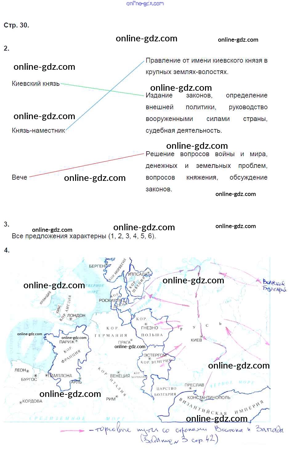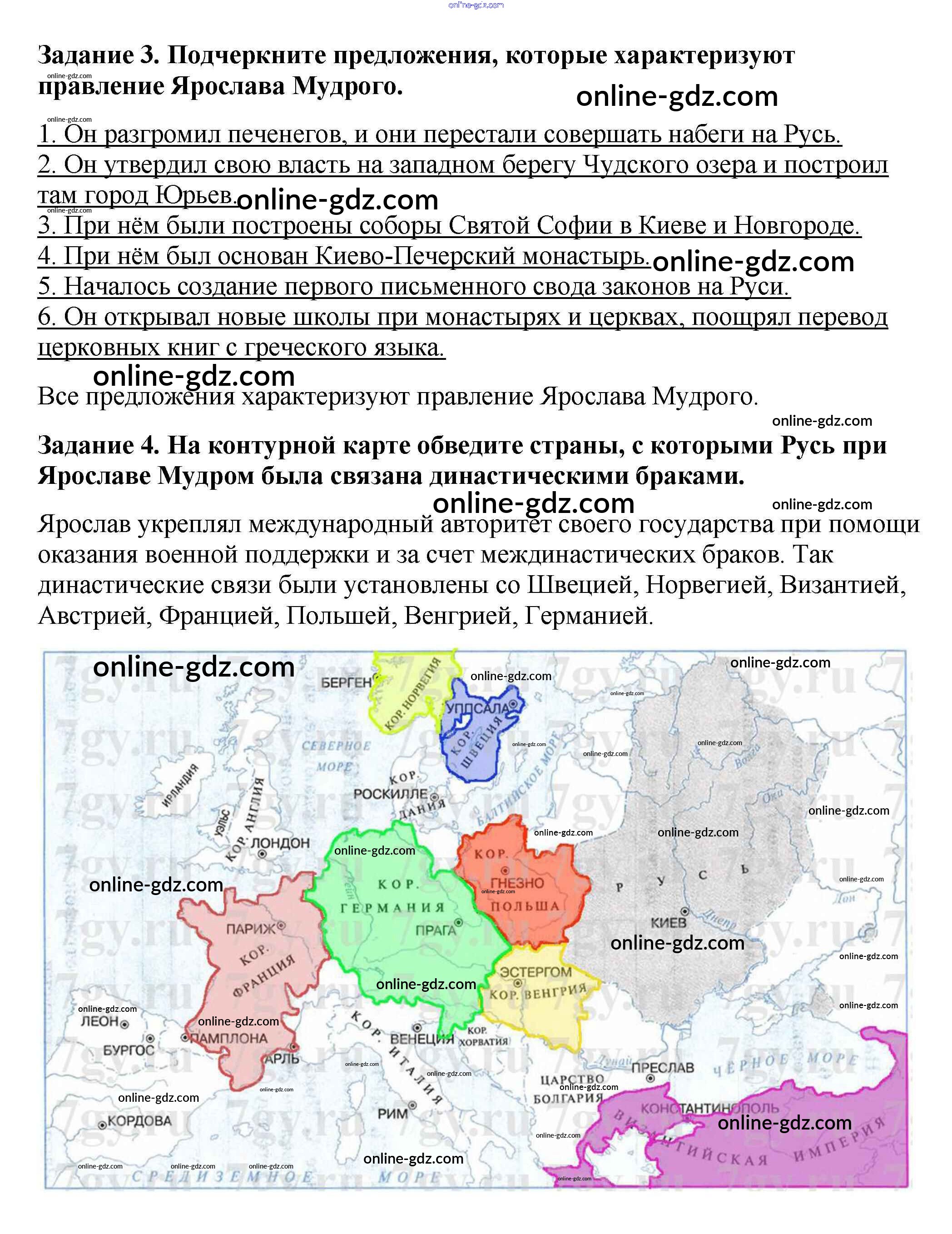 Готовые домашние задания по Истории за 6 класс Рабочая тетрадь Артасов, Данилов 2016 - §7. Русское государство при Ярославе Мудром стр. 30