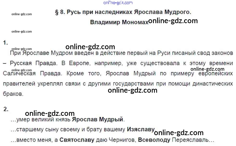 §8. Русь при наследниках Ярослава Мудрого. Владимир Мономах