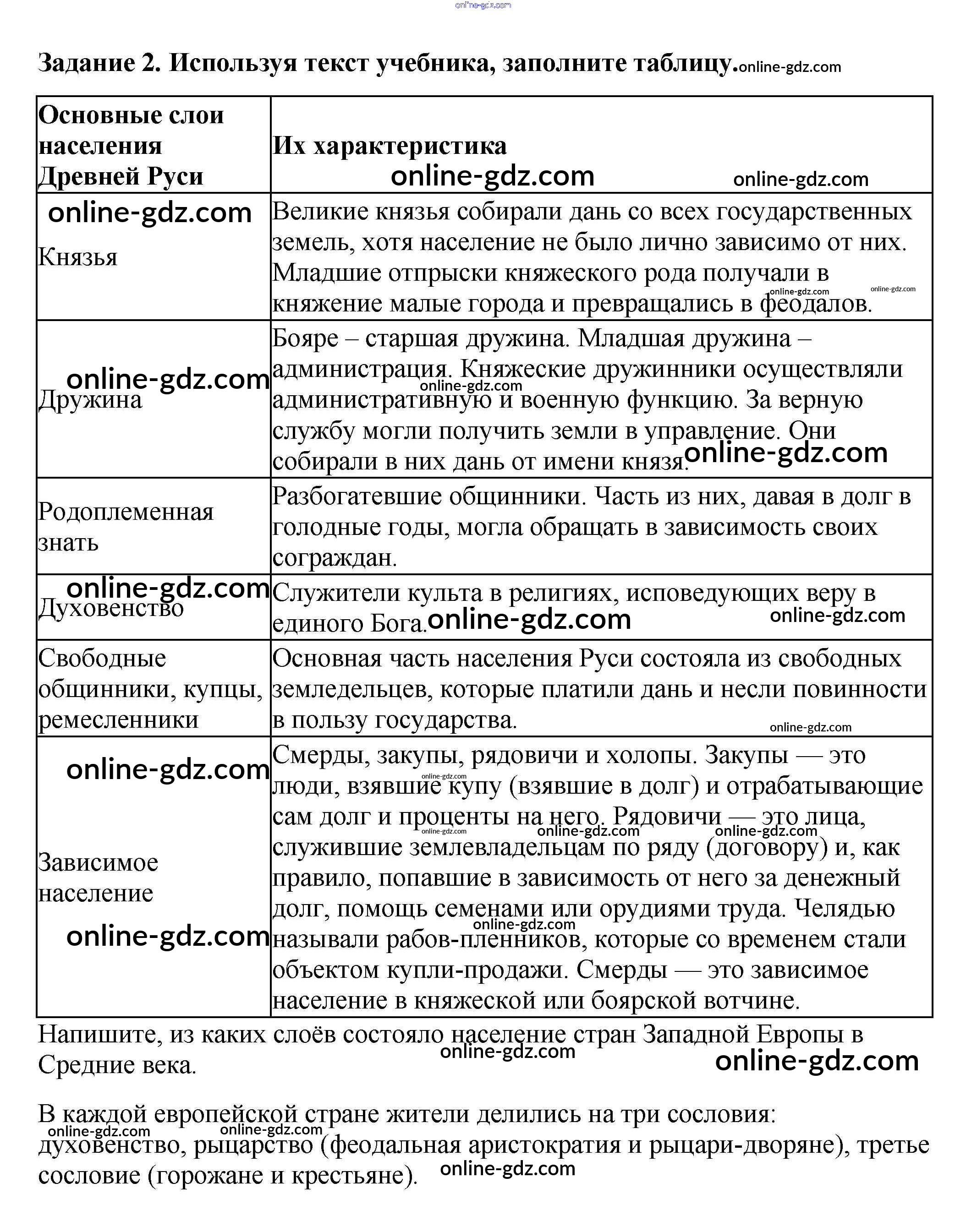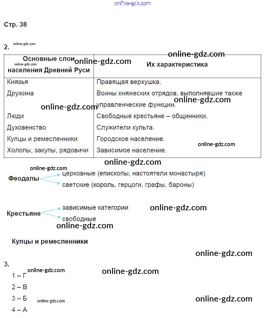 Готовые домашние задания по Истории за 6 класс Рабочая тетрадь Артасов, Данилов 2016 - §9. Общественный строй и церковная организация на Руси стр. 38