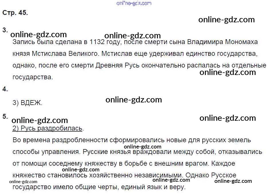 Готовые домашние задания по Истории за 6 класс Рабочая тетрадь Баранов Алгоритм успеха 2017 - Страницы 45