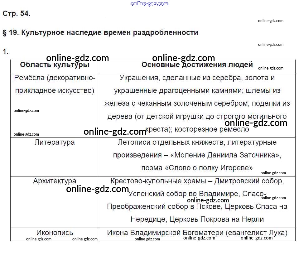 Готовые домашние задания по Истории за 6 класс Рабочая тетрадь Баранов Алгоритм успеха 2017 - Страницы 54