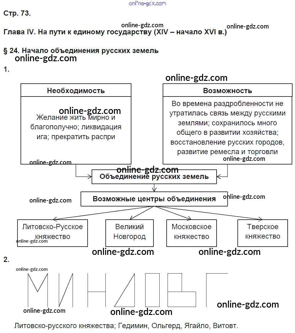 Готовые домашние задания по Истории за 6 класс Рабочая тетрадь Баранов Алгоритм успеха 2017 - Страницы 73