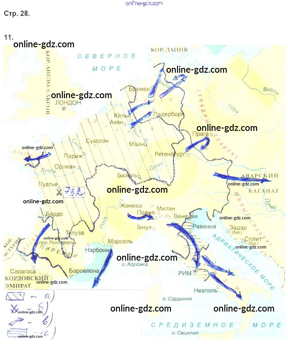 Готовые домашние задания по Истории за 6 класс Рабочая тетрадь Петрова Инновационная школа 2017 - Глава 3. Держава франков стр. 28