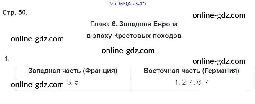 Готовые домашние задания по Истории за 6 класс Рабочая тетрадь Петрова Инновационная школа 2017 - Глава 6. Западная Европа в эпоху Крестовых походов стр. 50