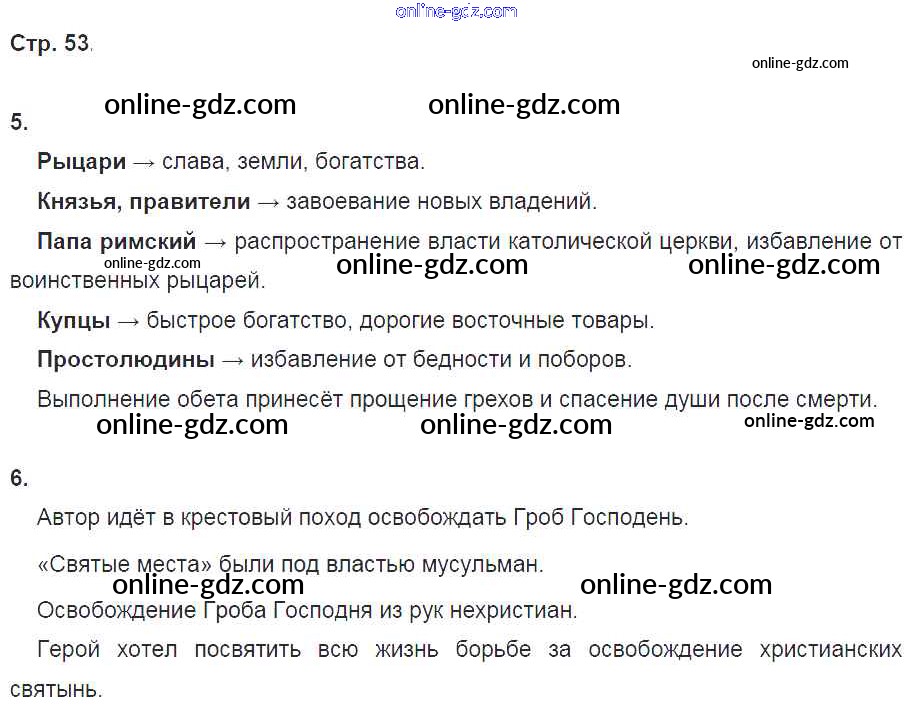 Готовые домашние задания по Истории за 6 класс Рабочая тетрадь Петрова Инновационная школа 2017 - Глава 6. Западная Европа в эпоху Крестовых походов стр. 53