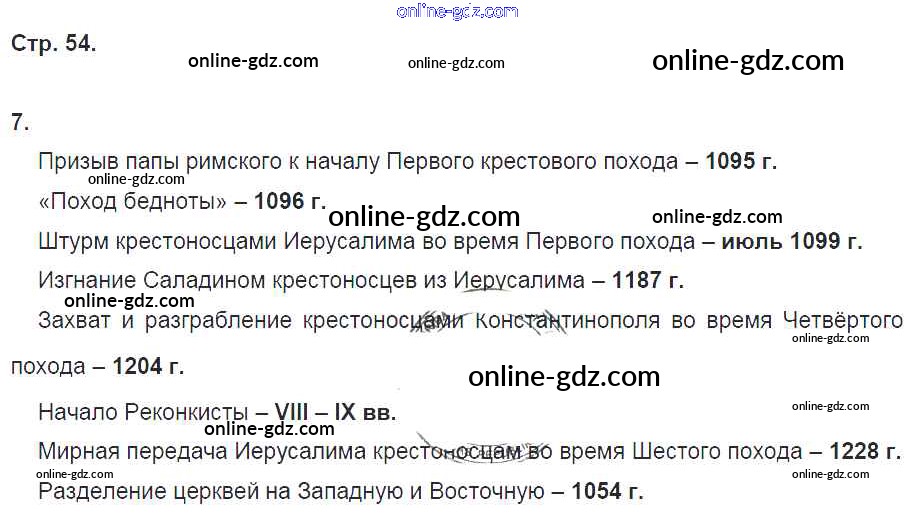 Готовые домашние задания по Истории за 6 класс Рабочая тетрадь Петрова Инновационная школа 2017 - Глава 6. Западная Европа в эпоху Крестовых походов стр. 54