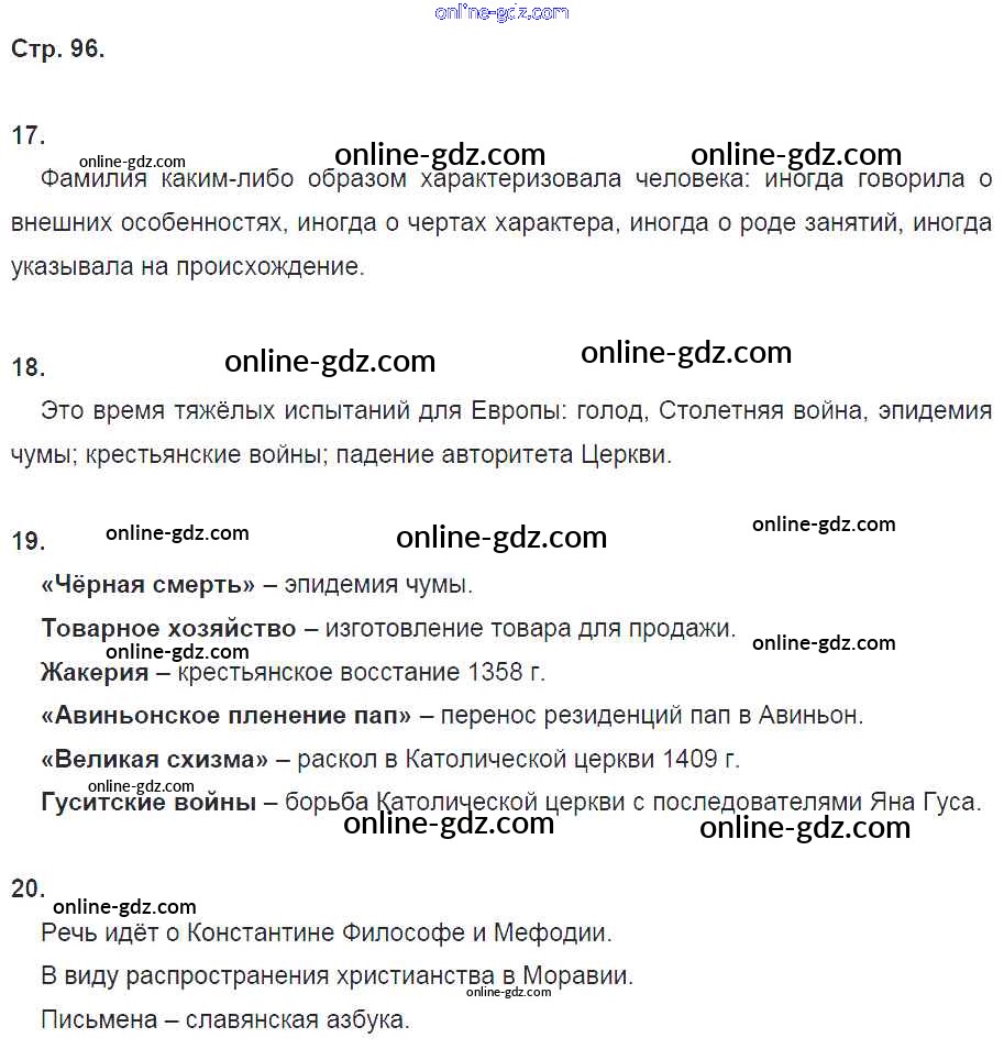 Готовые домашние задания по Истории за 6 класс Рабочая тетрадь Петрова Инновационная школа 2017 - Глава 8. Вершина Средневековья стр. 96