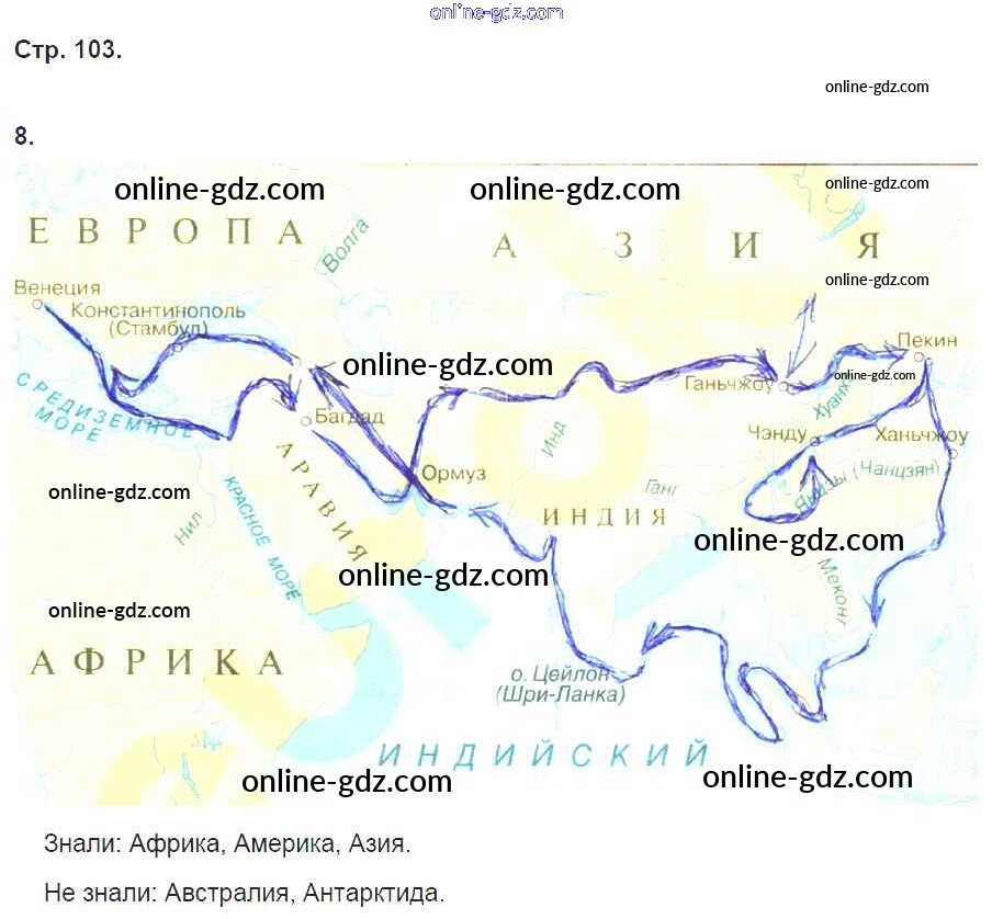 Готовые домашние задания по Истории за 6 класс Рабочая тетрадь Петрова Инновационная школа 2017 - Глава 9. Где был и и где не был Марко Поло стр. 103