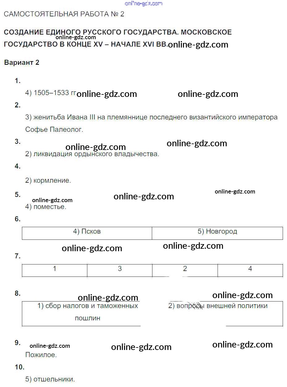 Готовые домашние задания по Истории за 6 класс Тематический контроль Артасов, Гаврилина 2015 - СР-№2. Создание единого Русского государства Русь Московская Вариант-2