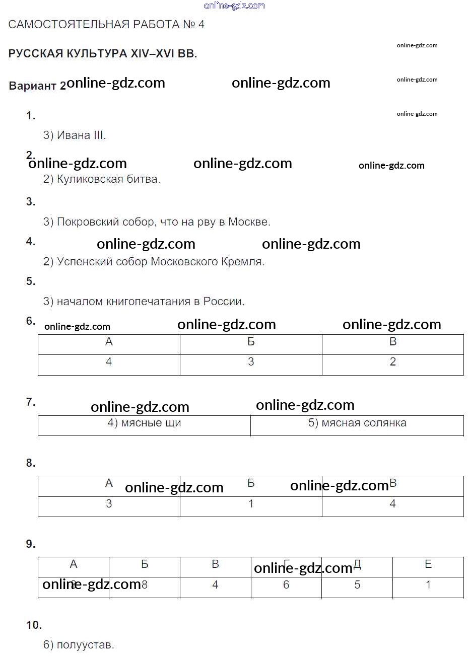 Готовые домашние задания по Истории за 6 класс Тематический контроль Артасов, Гаврилина 2015 - СР-№4. Русская культура в XIV-XVI вв. Русь Московская Вариант-2