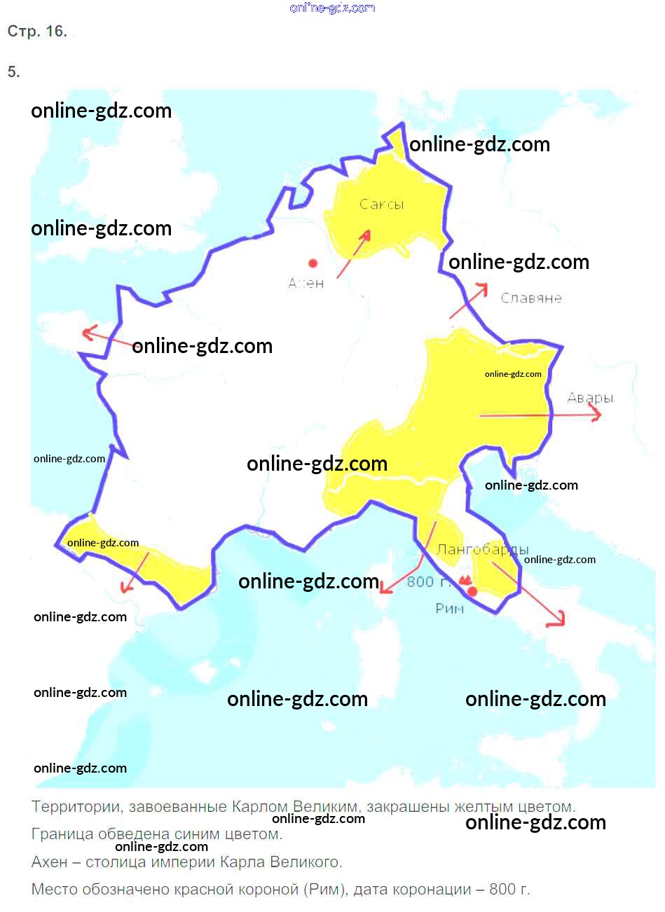 Готовые домашние задания по Истории за 6 класс Тетрадь-тренажёр Ведюшкин, Ведюшкина Сферы 2017 - Рождение Средневекового мира стр. 16
