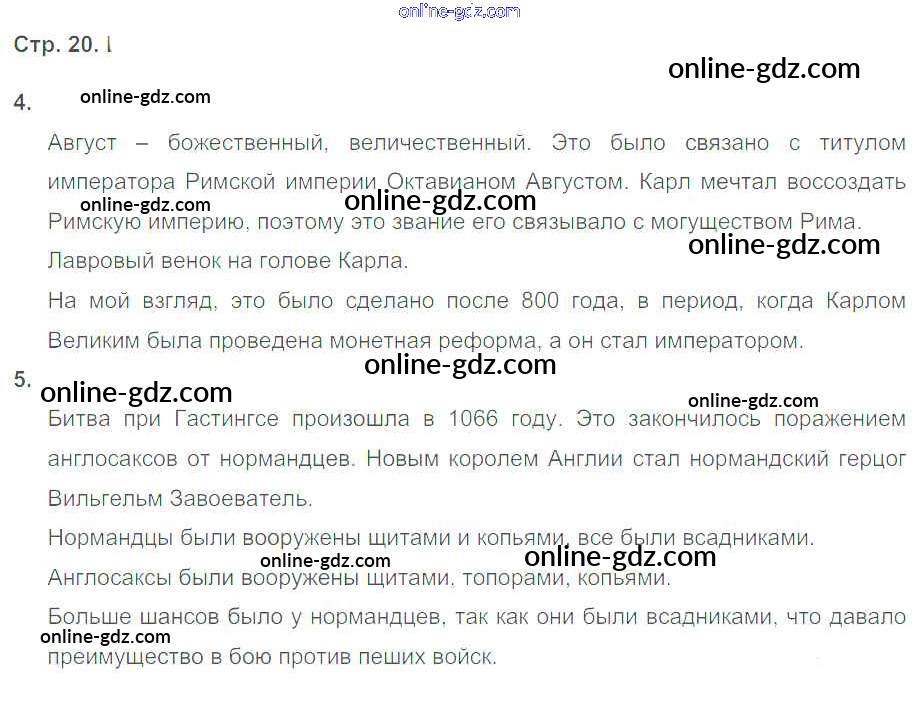 Готовые домашние задания по Истории за 6 класс Тетрадь-тренажёр Ведюшкин, Ведюшкина Сферы 2017 - Рождение Средневекового мира стр. 20