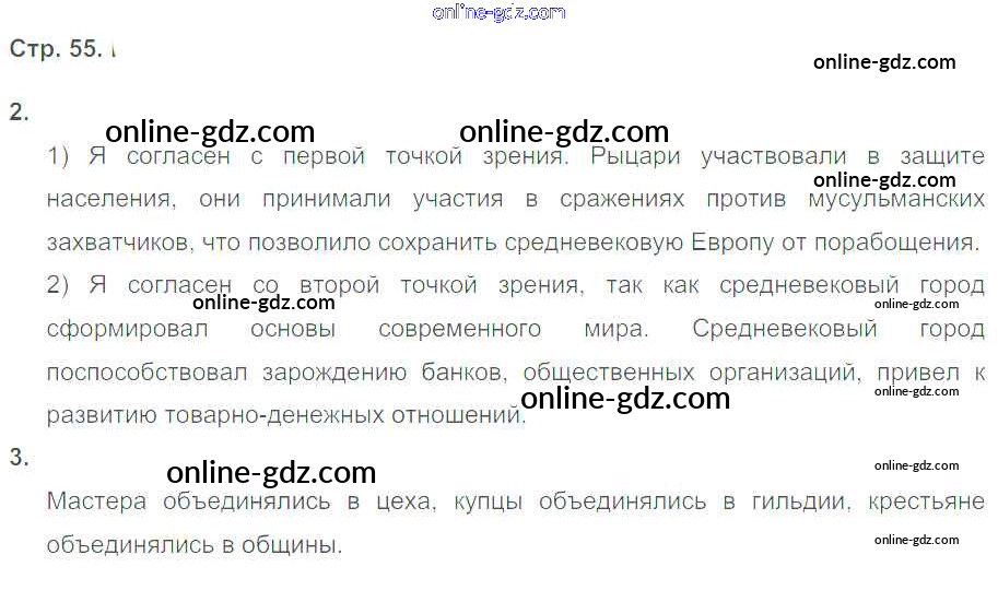 Готовые домашние задания по Истории за 6 класс Тетрадь-тренажёр Ведюшкин, Ведюшкина Сферы 2017 - Подъем Средневековой Европы стр. 55