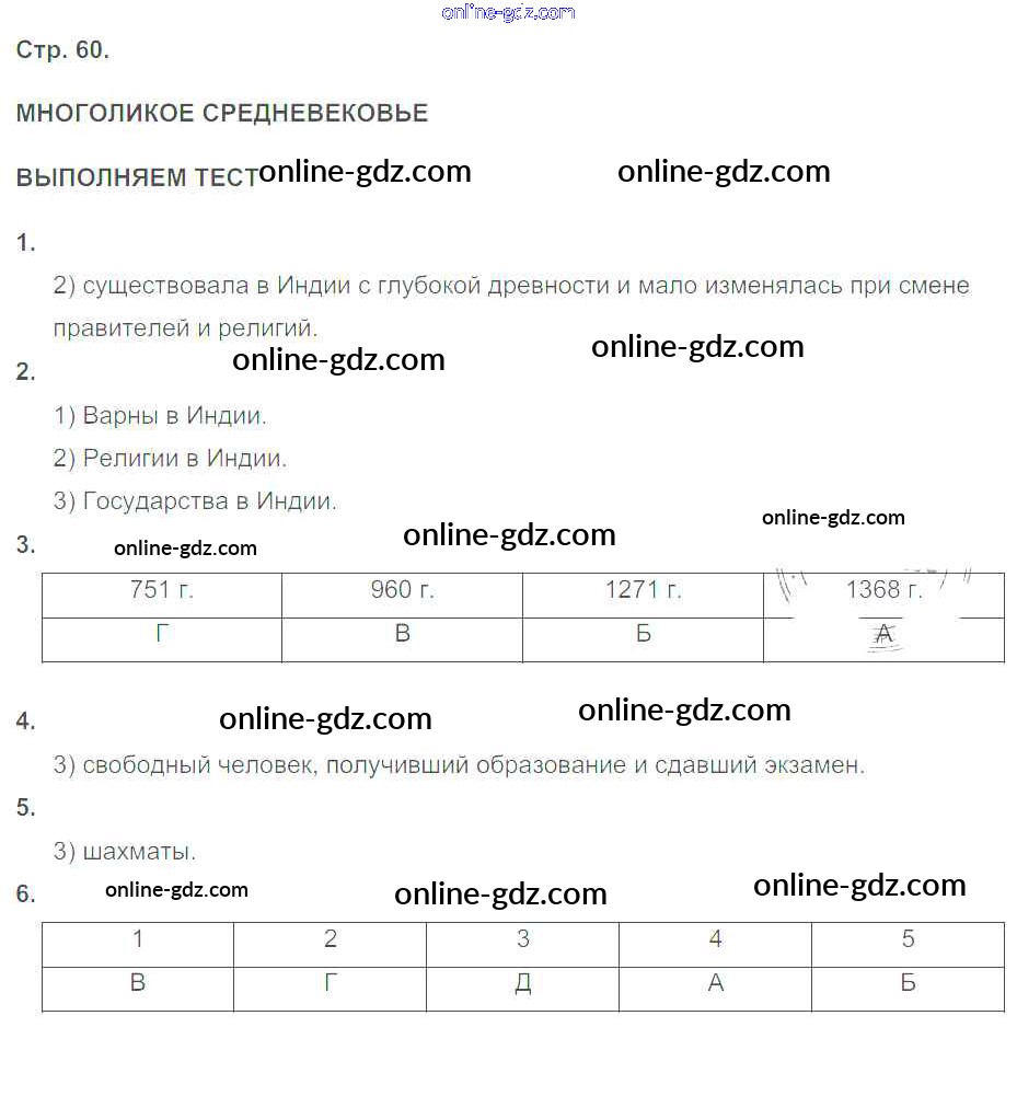 Готовые домашние задания по Истории за 6 класс Тетрадь-тренажёр Ведюшкин, Ведюшкина Сферы 2017 - Многоликое Средневековье стр. 60