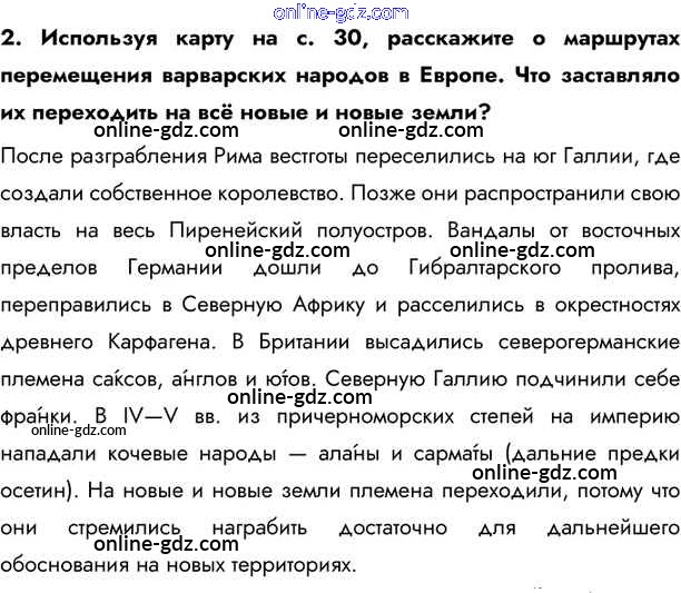 Готовые домашние задания по Истории за 6 класс Учебник Бойцов, Шукуров Инновационная школа 2019 - Вопросы и задания после параграфа §3. Варвары-завоеватели 2