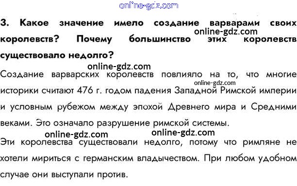 Готовые домашние задания по Истории за 6 класс Учебник Бойцов, Шукуров Инновационная школа 2019 - Вопросы и задания после параграфа §3. Варвары-завоеватели 3