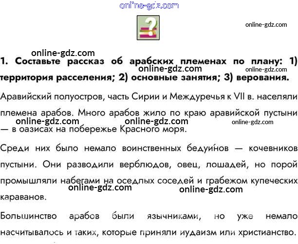 Готовые домашние задания по Истории за 6 класс Учебник Бойцов, Шукуров Инновационная школа 2019 - Вопросы и задания после параграфа §4. Возникновение и распространение ислама 1