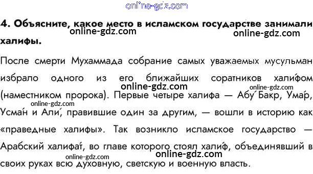 Готовые домашние задания по Истории за 6 класс Учебник Бойцов, Шукуров Инновационная школа 2019 - Вопросы и задания после параграфа §4. Возникновение и распространение ислама 4