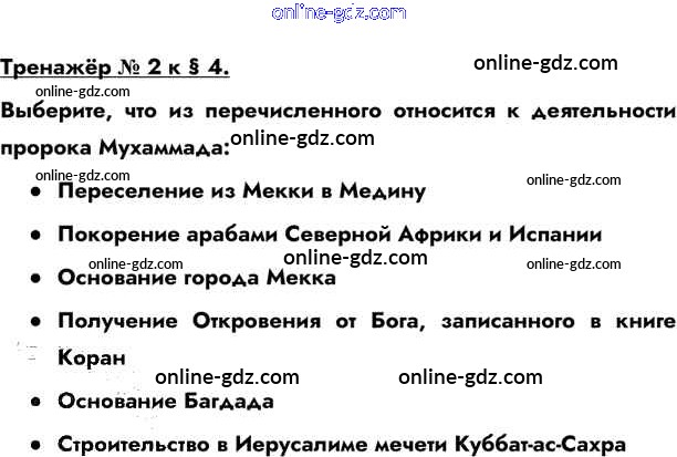 Готовые домашние задания по Истории за 6 класс Учебник Бойцов, Шукуров Инновационная школа 2019 - Тренажёр §4. Возникновение и распространение ислама 2