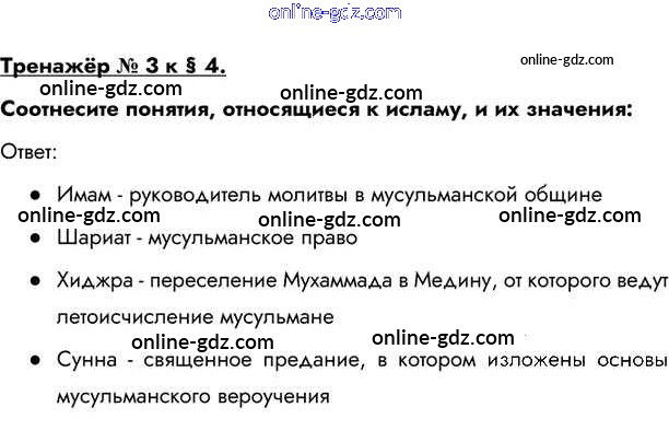 Готовые домашние задания по Истории за 6 класс Учебник Бойцов, Шукуров Инновационная школа 2019 - Тренажёр §4. Возникновение и распространение ислама 3