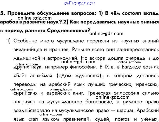 Готовые домашние задания по Истории за 6 класс Учебник Бойцов, Шукуров Инновационная школа 2019 - Вопросы и задания после параграфа §5. Мир ислама 5