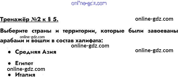 Готовые домашние задания по Истории за 6 класс Учебник Бойцов, Шукуров Инновационная школа 2019 - Тренажёр §5. Мир ислама 2