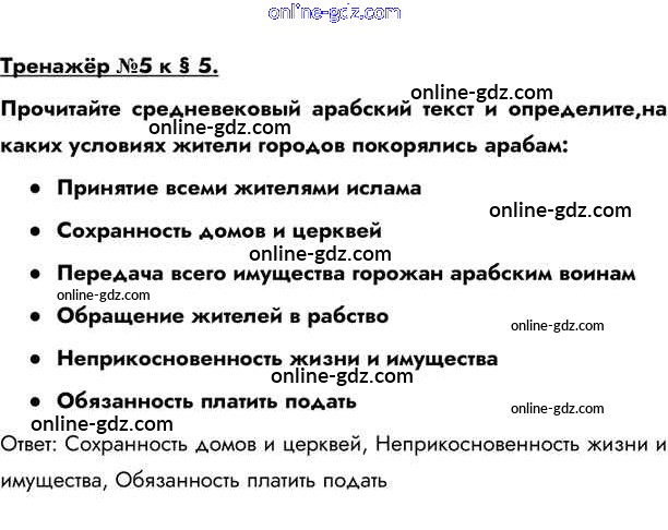 Готовые домашние задания по Истории за 6 класс Учебник Бойцов, Шукуров Инновационная школа 2019 - Тренажёр §5. Мир ислама 5