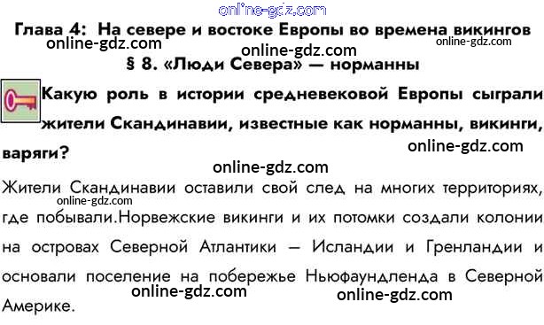 Готовые домашние задания по Истории за 6 класс Учебник Бойцов, Шукуров Инновационная школа 2019 - Ключевые вопросы §8. «Люди Севера» — норманны 1