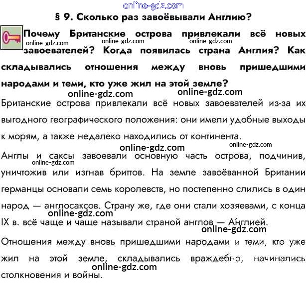 Готовые домашние задания по Истории за 6 класс Учебник Бойцов, Шукуров Инновационная школа 2019 - Ключевые вопросы §9. Сколько раз завоёвывали Англию? 1