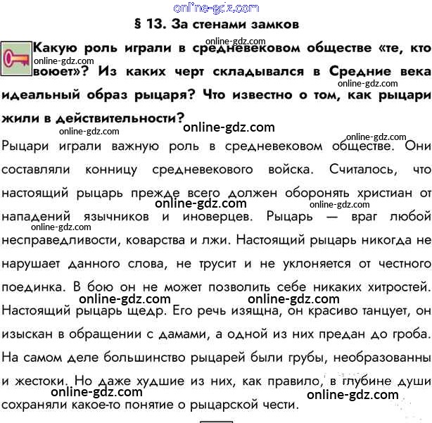 Готовые домашние задания по Истории за 6 класс Учебник Бойцов, Шукуров Инновационная школа 2019 - Ключевые вопросы §13. За стенами замков 1