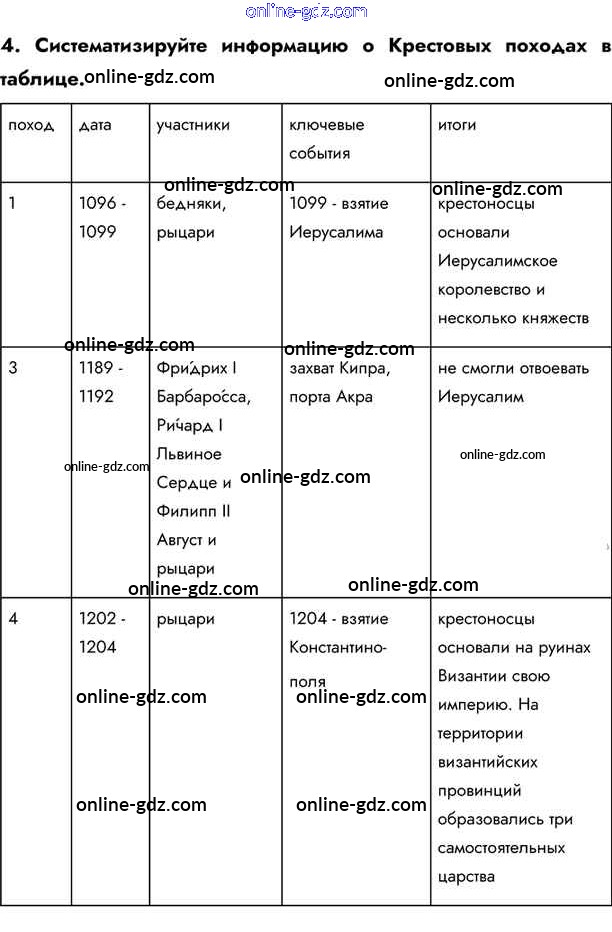 Готовые домашние задания по Истории за 6 класс Учебник Бойцов, Шукуров Инновационная школа 2019 - Вопросы и задания после параграфа §15. Крестовые походы 4