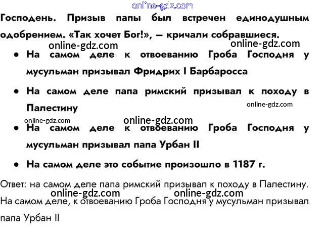 Готовые домашние задания по Истории за 6 класс Учебник Бойцов, Шукуров Инновационная школа 2019 - Тренажёр §15. Крестовые походы 4