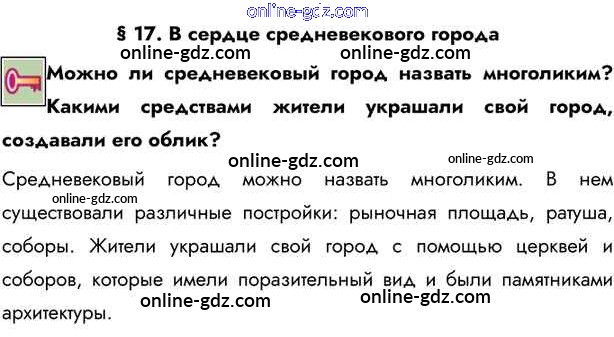Готовые домашние задания по Истории за 6 класс Учебник Бойцов, Шукуров Инновационная школа 2019 - Ключевые вопросы §17. В сердце средневекового города 1