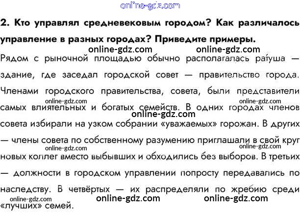 Готовые домашние задания по Истории за 6 класс Учебник Бойцов, Шукуров Инновационная школа 2019 - Вопросы и задания после параграфа §17. В сердце средневекового города 2