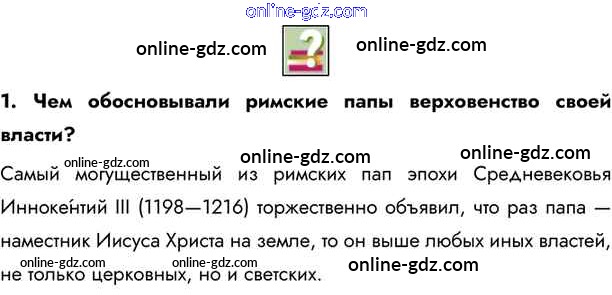 Готовые домашние задания по Истории за 6 класс Учебник Бойцов, Шукуров Инновационная школа 2019 - Вопросы и задания после параграфа §19. Во главе христианского мира 1
