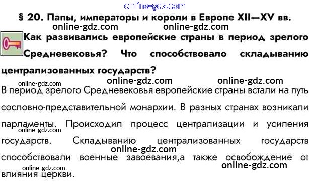 Готовые домашние задания по Истории за 6 класс Учебник Бойцов, Шукуров Инновационная школа 2019 - Ключевые вопросы §20. Папы, императоры и короли в Европе XII—XV вв. 1