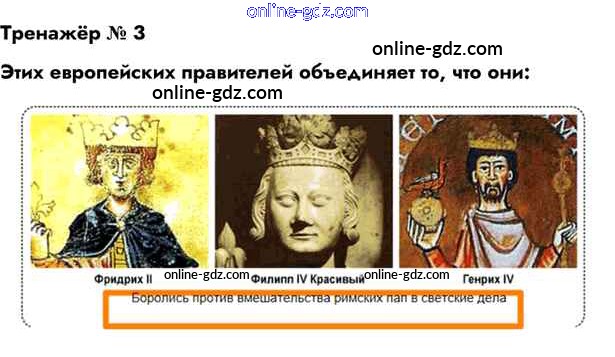 Готовые домашние задания по Истории за 6 класс Учебник Бойцов, Шукуров Инновационная школа 2019 - Тренажёр §20. Папы, императоры и короли в Европе XII—XV вв. 3