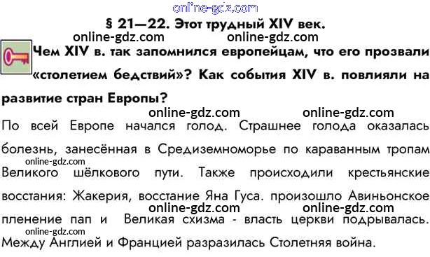 Готовые домашние задания по Истории за 6 класс Учебник Бойцов, Шукуров Инновационная школа 2019 - Ключевые вопросы §21-22. Этот трудный XIV век 1