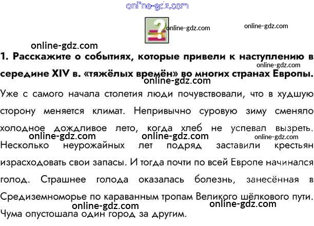 Готовые домашние задания по Истории за 6 класс Учебник Бойцов, Шукуров Инновационная школа 2019 - Вопросы и задания после параграфа §21-22. Этот трудный XIV век 1