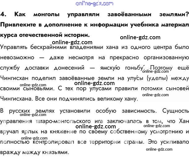 Готовые домашние задания по Истории за 6 класс Учебник Бойцов, Шукуров Инновационная школа 2019 - Вопросы и задания после параграфа §23. Во владениях великого хана 4