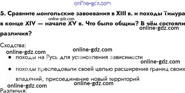 Готовые домашние задания по Истории за 6 класс Учебник Бойцов, Шукуров Инновационная школа 2019 - Вопросы и задания после параграфа §23. Во владениях великого хана 5