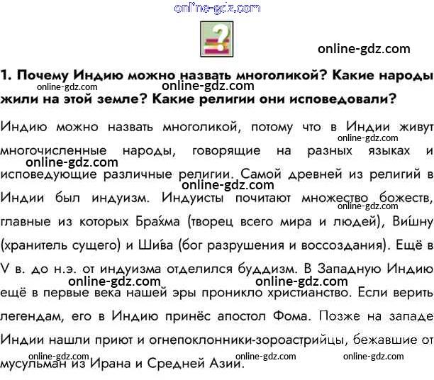 Готовые домашние задания по Истории за 6 класс Учебник Бойцов, Шукуров Инновационная школа 2019 - Вопросы и задания после параграфа §24. Индия: раджи и султаны 1