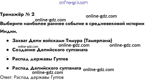 Готовые домашние задания по Истории за 6 класс Учебник Бойцов, Шукуров Инновационная школа 2019 - Тренажёр §24. Индия: раджи и султаны 2