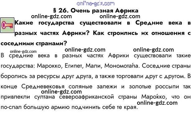 Готовые домашние задания по Истории за 6 класс Учебник Бойцов, Шукуров Инновационная школа 2019 - Ключевые вопросы §26. Очень разная Африка 1