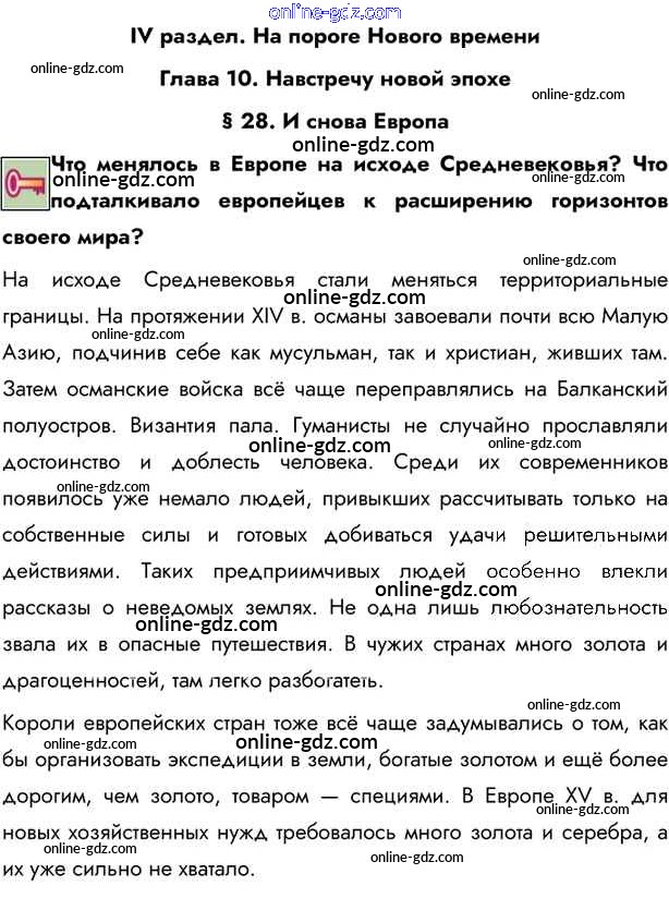 Готовые домашние задания по Истории за 6 класс Учебник Бойцов, Шукуров Инновационная школа 2019 - Ключевые вопросы §28. И снова Европа 1