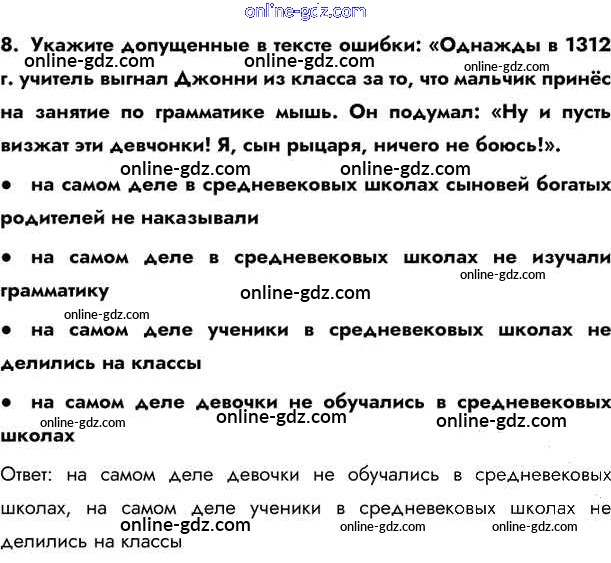 Готовые домашние задания по Истории за 6 класс Учебник Бойцов, Шукуров Инновационная школа 2019 - Тест №1 Итоговый тест 8
