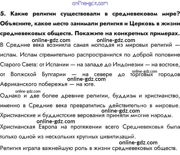 Готовые домашние задания по Истории за 6 класс Учебник Бойцов, Шукуров Инновационная школа 2019 - Вопросы и задания для обобщения по курсу 5