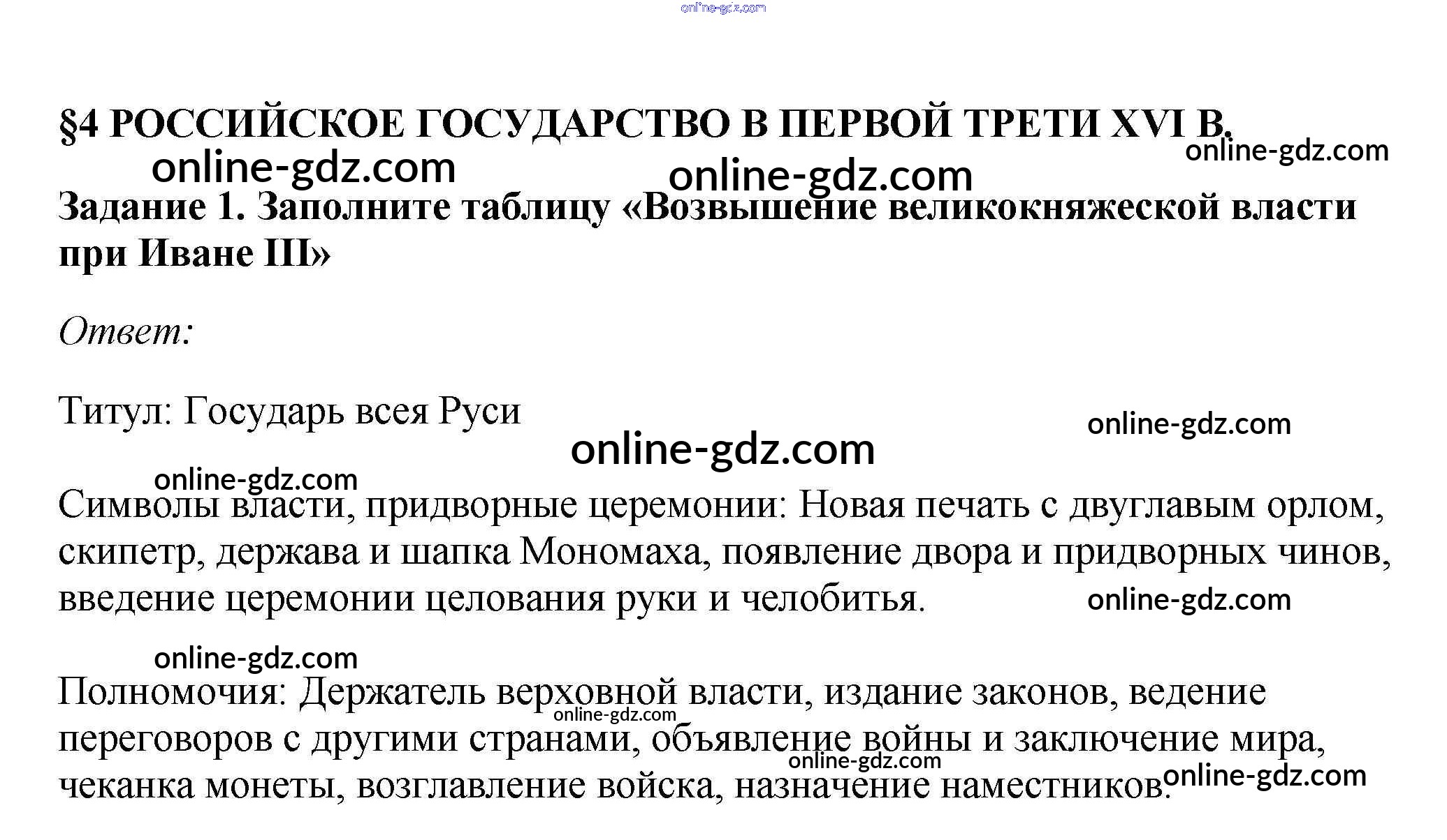 класс, от простых до сложных. Мы стремимся предоставить нашим пользователям максимально точные и полезные ответы к Рабочей тетради Данилов, Косулина УМК - § 4. Российское государство в первой трети XVI в. 1, поэтому мы постоянно работаем над улучшением нашего контента. Мы всегда готовы помочь!