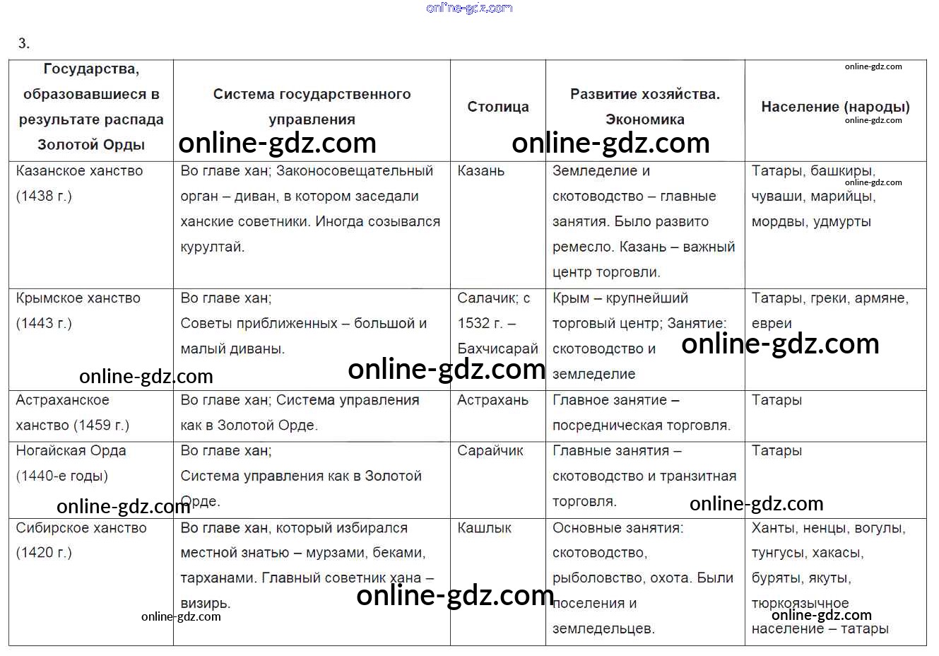 Готовые домашние задания по Истории за 7 класс Рабочая тетрадь Данилов, Косулина УМК 2016 - Государства Поволжья, Северного Причерноморья, Сибири в середине XVI в. 3